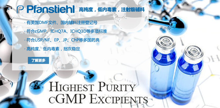 “熱烈祝賀Pfanstiehl的注射級甘氨酸Glycine(G-140)喜獲CDE登記號F20250000403, 這是Pfanstiehl產品獲得的第18個CDE登記號!”甘氨酸在醫藥輔料制劑中應用廣泛,, 可作為緩沖劑,增溶劑,穩定劑等,具有諸多優勢。Pfanstiehl秉承一貫高品質理念,為滿足全球生物制藥行業對于高品質甘氨酸的需求,隆重推出的注射級甘氨酸Glycine (G-140), 具有超高純度,超低內毒素,超低金屬殘留的特點,單獨檢測29種金屬離子,并且新增DNA,RNA,DNA酶,RNA酶和脂肪酶,亞硝酸鹽等多項質量指標的檢測,符合多國藥典規定(USP, EP, BP, JPE, ChP),可用于生物治療性藥物和疫苗的生產。產品信息:· 產品名稱:Glycine, High Purity, Low Endotoxin, Low Metals, USP, EP, BP, JPE, ChP (G-140)· 中文名稱:甘氨酸· 分子式:C2H5NO2· 分子量:75.07 g / mol· CAS號:56-40-6· 產品貨號:G-140產品特點: · 超高純度,超低內毒素,超低微生物含量,超低金屬雜質殘留· 質量指標新增DNA,RNA,DNA酶,RNA酶,脂肪酶和亞硝酸鹽檢測· 符合多國藥典:USP, EP, BP, JPE, ChP· 符合ICH Q3D標準· 符合GMP標準· 已獲DMF和CDE登記號 產品應用:· 緩沖劑· 穩定劑· 增溶劑如果您對Pfanstiehl注射級別Glycine G-140感興趣,歡迎聯系Pfanstiehl 中國區代理商北京西美杰科技有限公司獲得如下詳細的產品概況說明文件和測試樣品。Pfanstiehl Inc.最新產品系列如下,歡迎聯系北京西美杰科技有限公司獲取100g裝免費樣品。北京西美杰科技有限公司為Pfanstiehl中國代理,為客戶提供完善的技術支持與售后服務。歡迎撥打西美杰客服電話400-050-4006或者登陸網站www_xmjsci_com.no1mei.com了解更多信息。 更多>